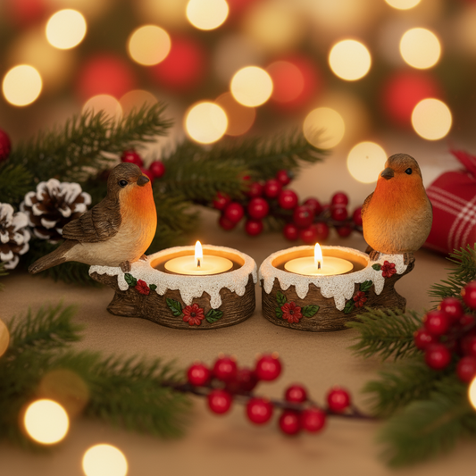 Christmas robins w/t light holder 2ass 12.5x6.5x8cm