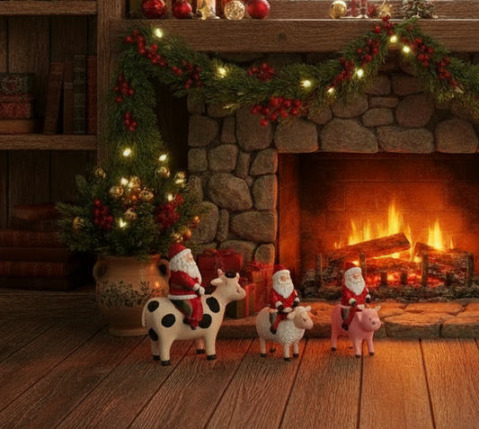 Santa on cow / pig /sheep 3ass 10x5x12cm