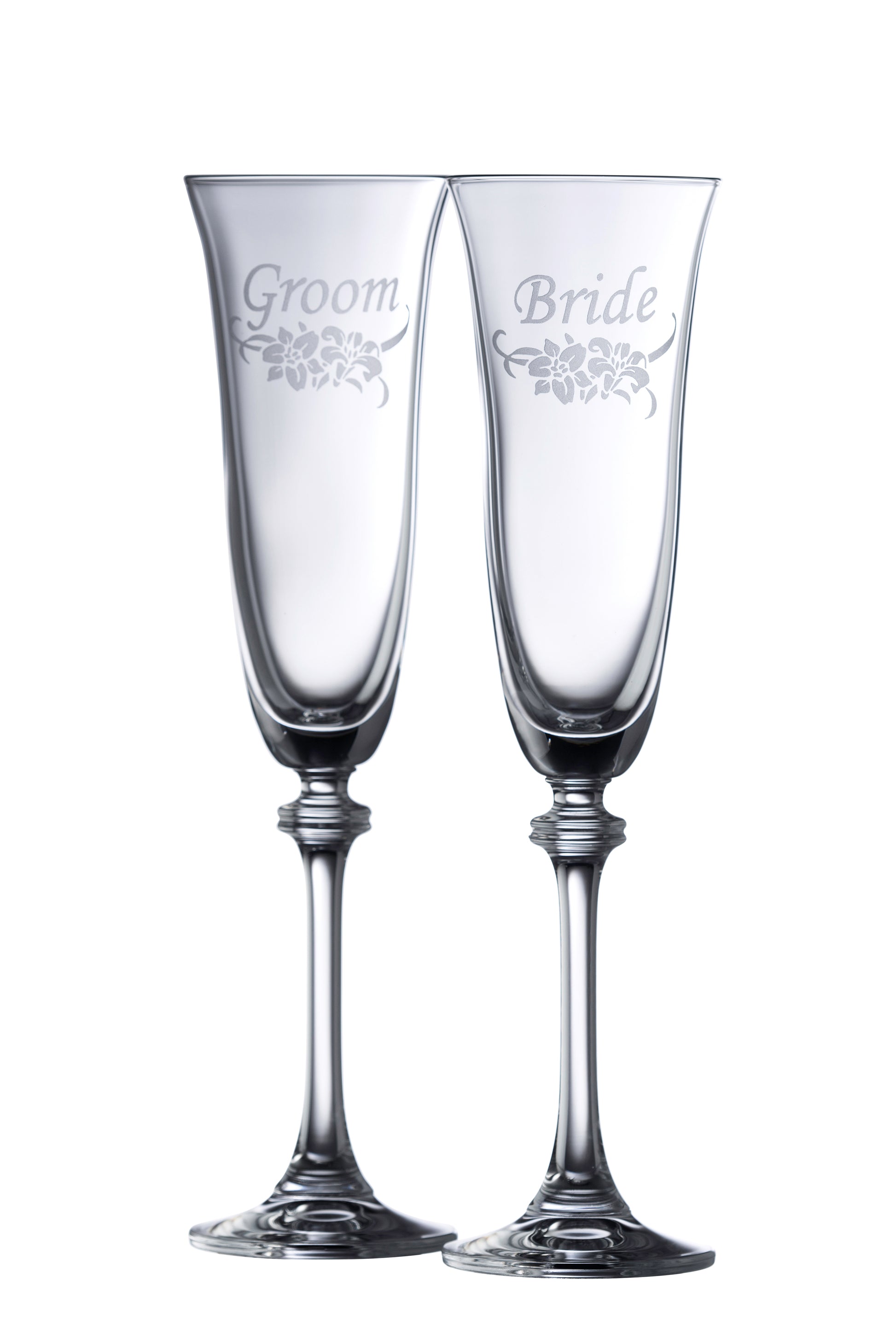 Galway Crystal Floral Bride & Groom Flute Pair