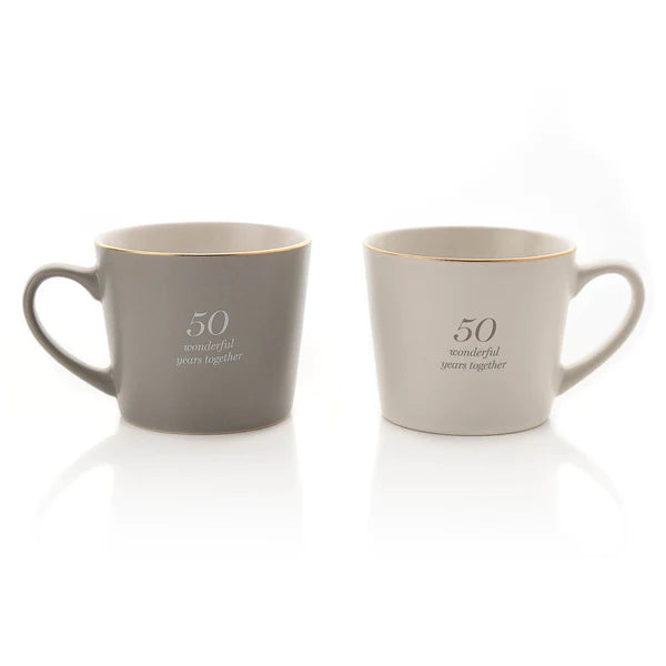 Amore Set of 2 Grey & White Mugs - 50th Anniversary