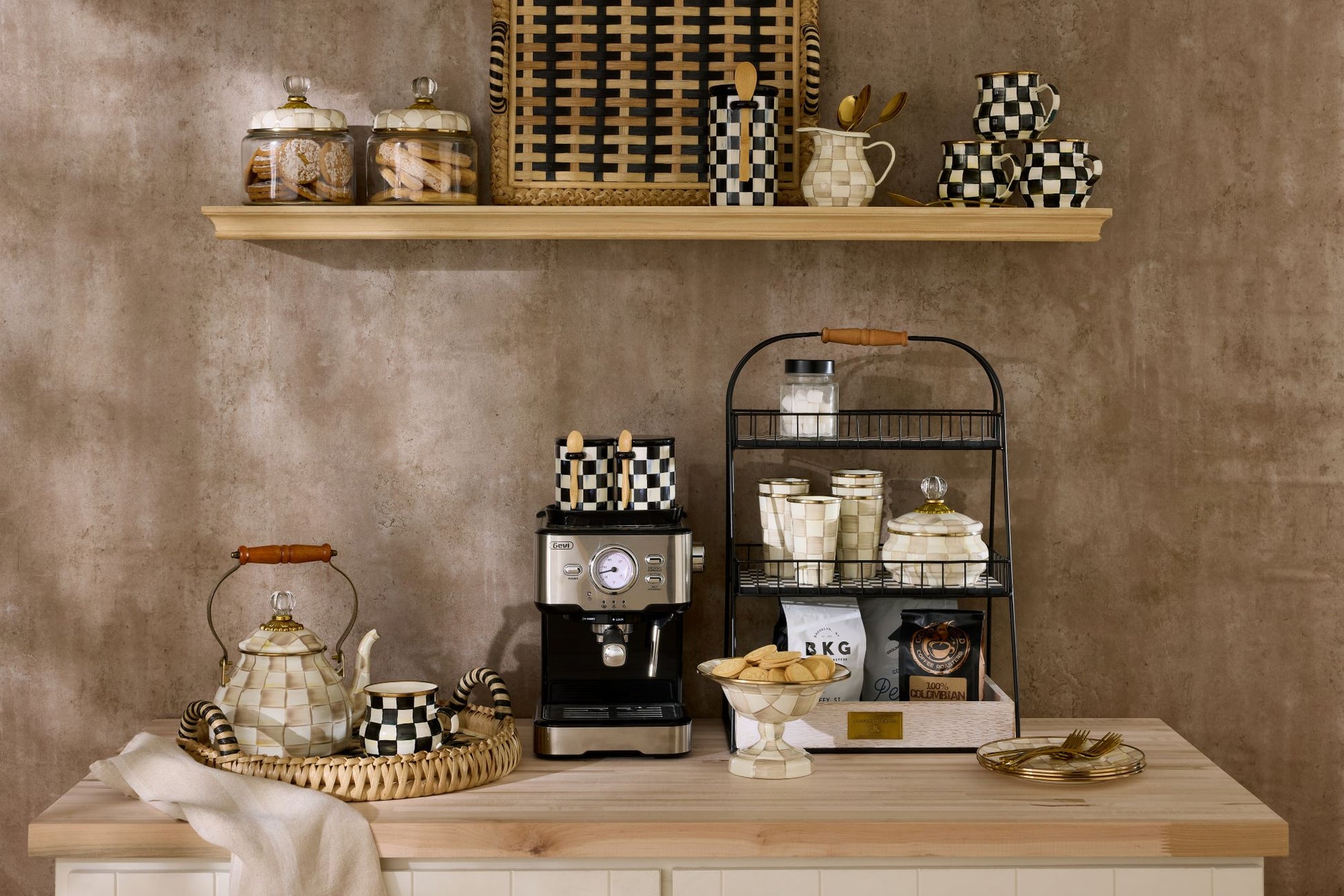 Flour, sugar, and coffee are just the start—our Courtly Check® Medium Enamel Canister is perfect for storing tea bags, sweet treats, or even pet biscuits in style. Hand-painted with MacKenzie-Childs’ iconic black and white colour-dragged checks and topped with a carved faux-cinnabar knob, it’s a striking piece for any Irish kitchen.
