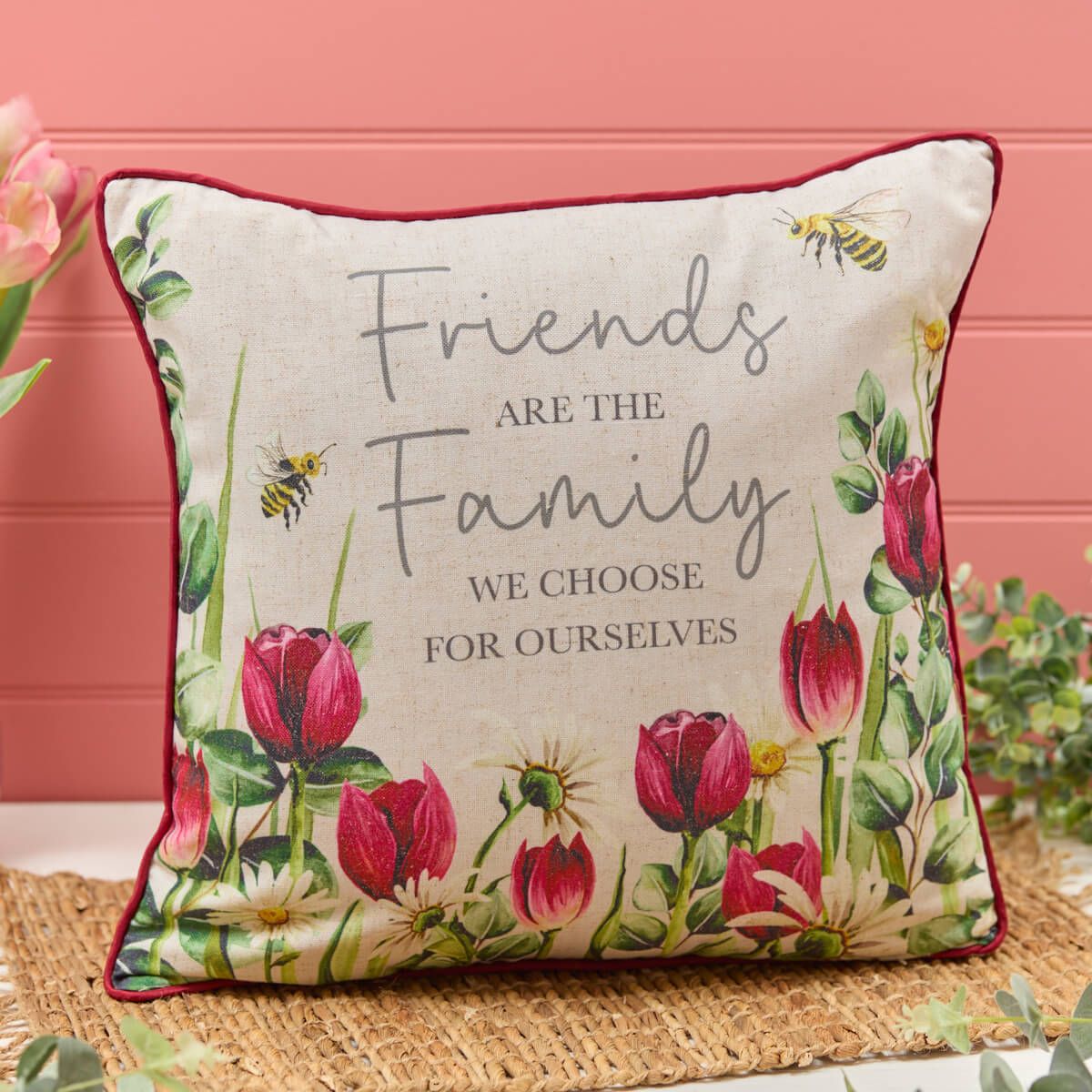 FRIENDS ARE THE FAMILY TULIP FLORAL CUSHION