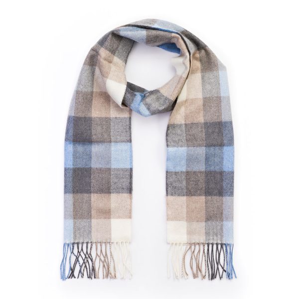 Merino Luxury Wool Scarf Blue Grey Stone White Block Check