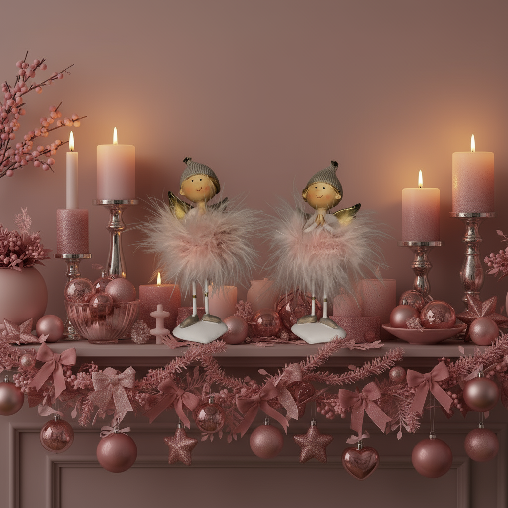 Standing Angel w/gold coloured wing and cream feather Skirt 14cm